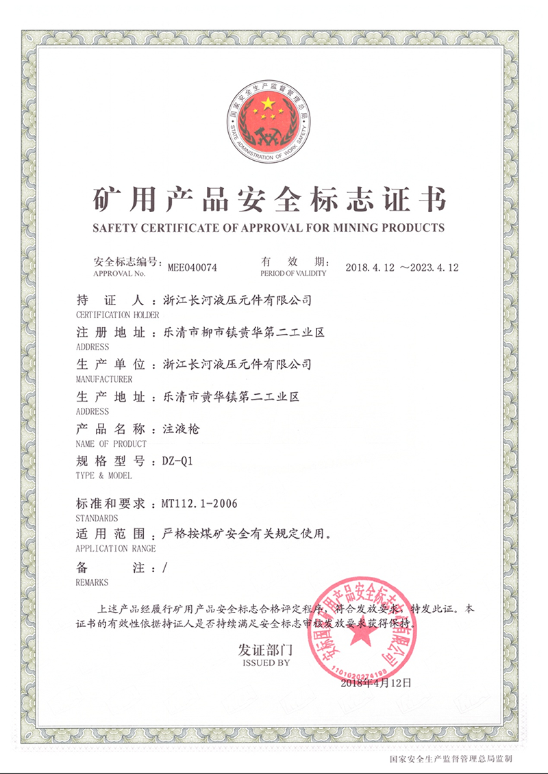 矿用产品安全标志证书注液枪