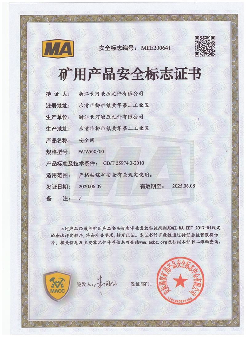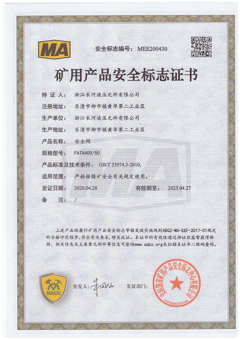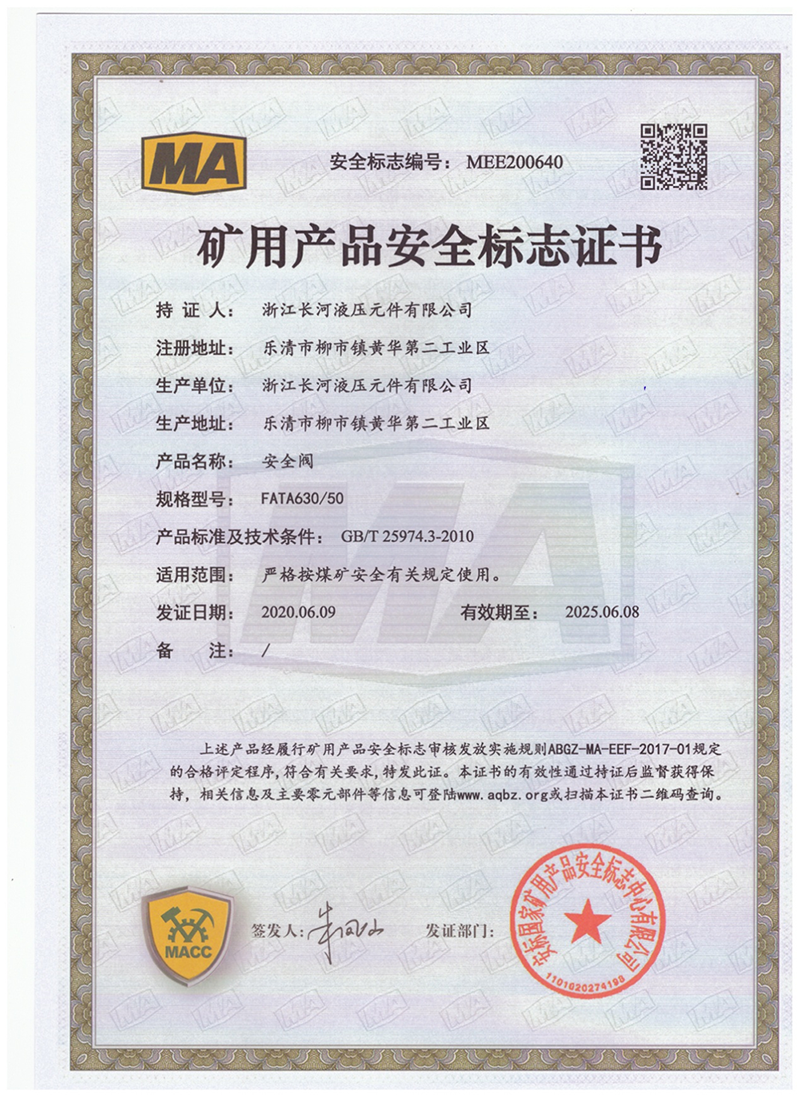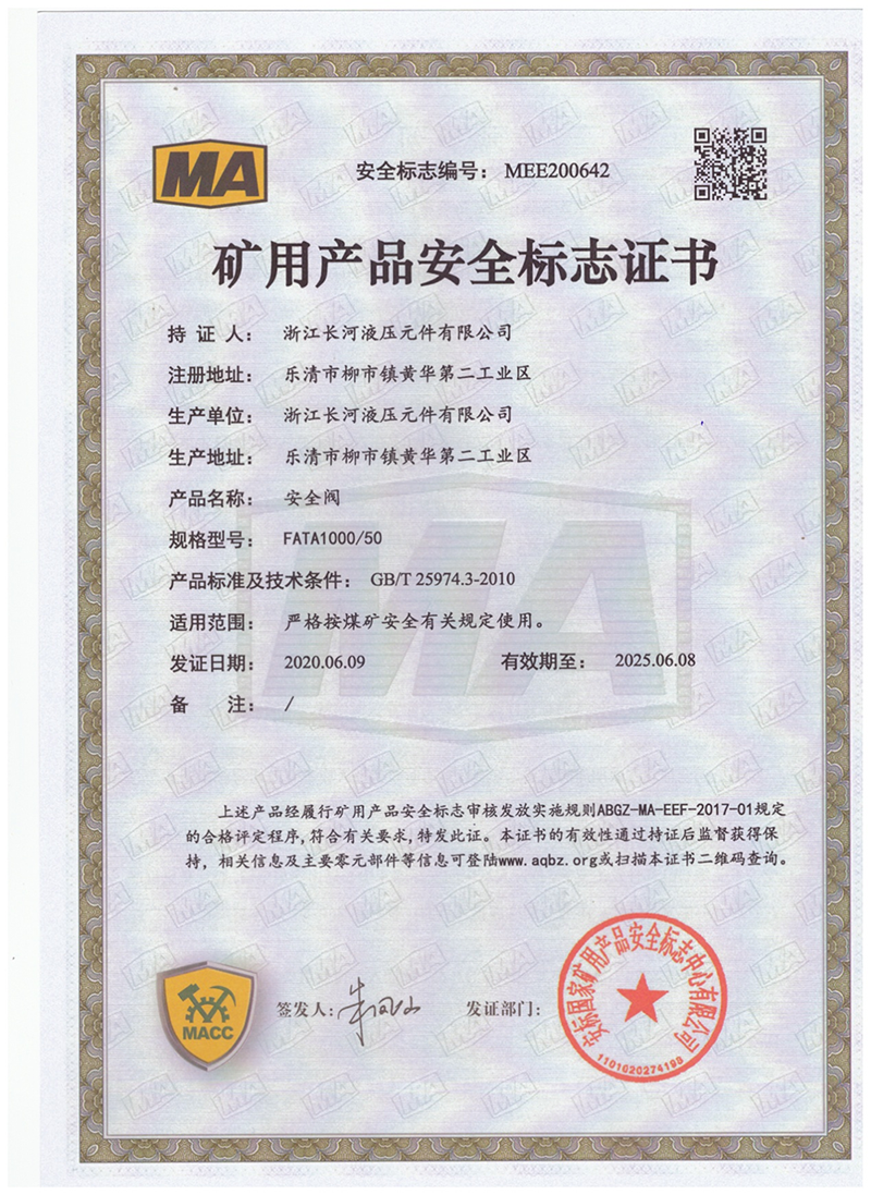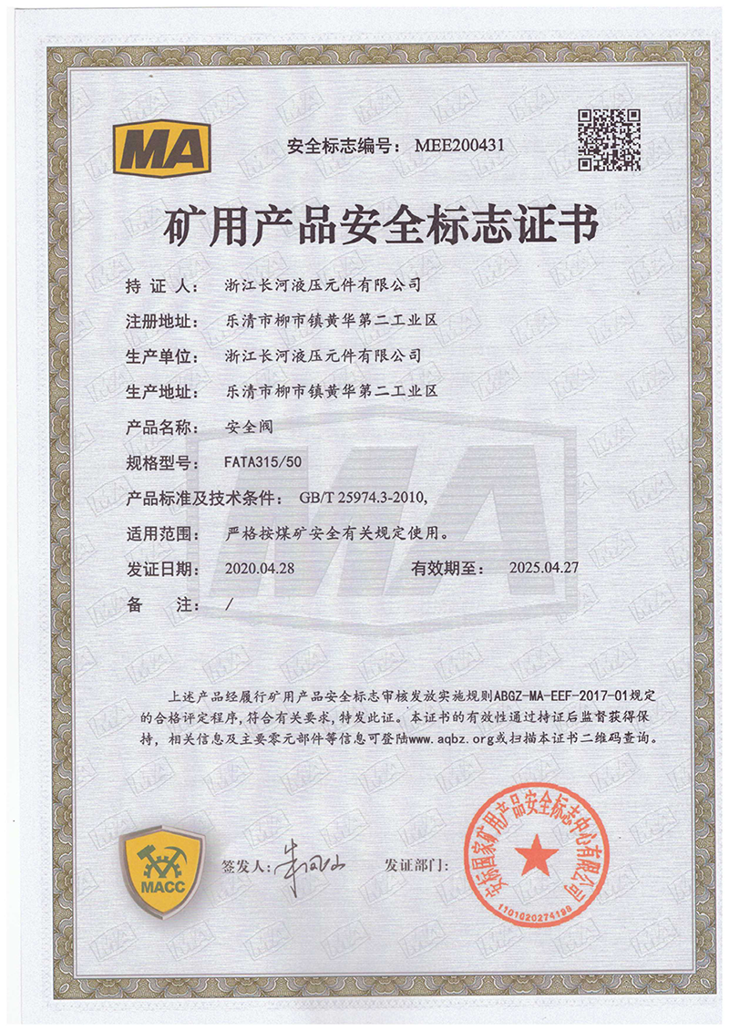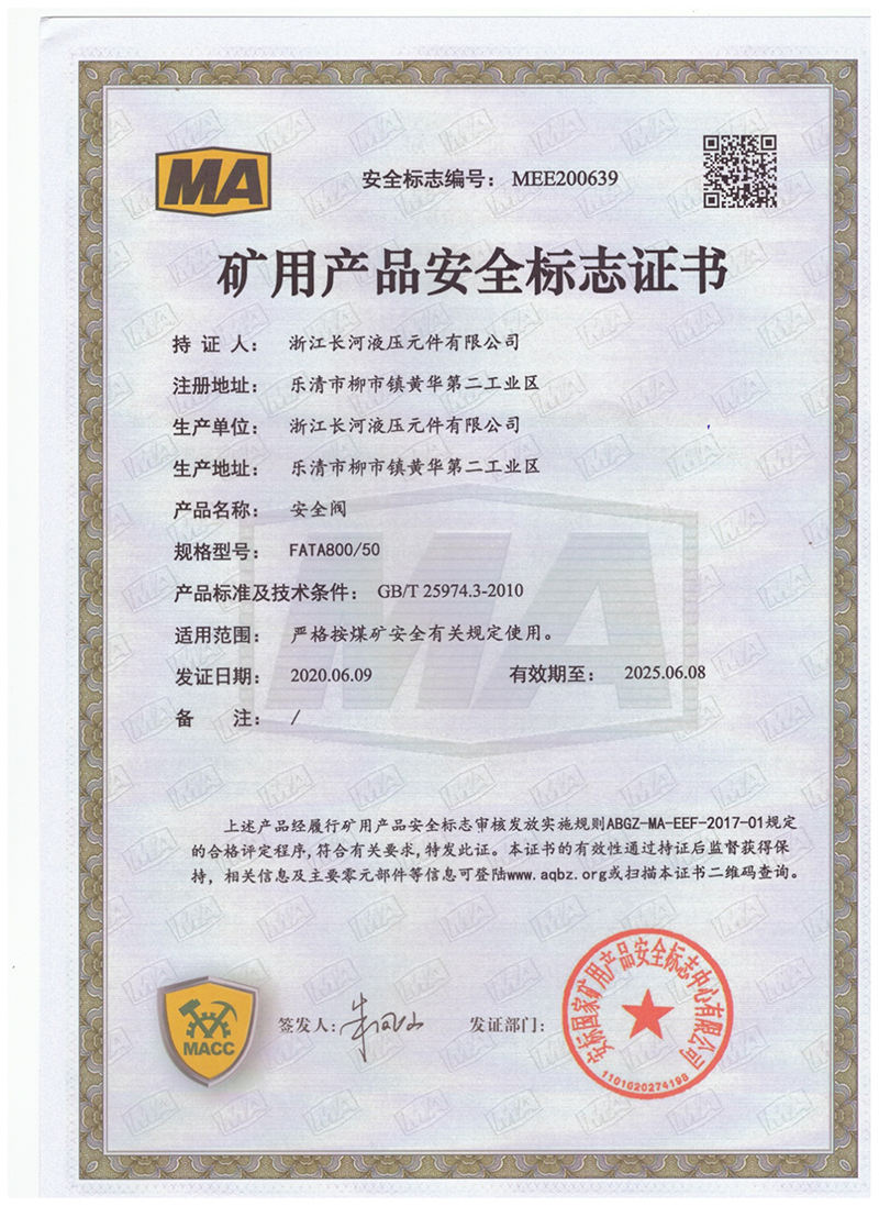 矿用产品安全标志证书安全阀